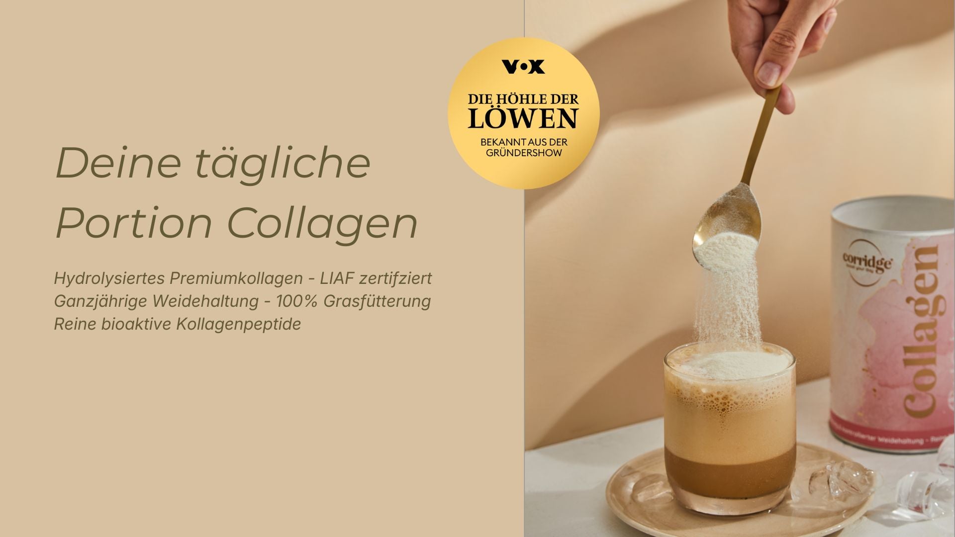 Corridge vereint Kollagen und Porridge in einem glutenfreien Frühstück, das sich leicht in deine tägliche Routine integrieren lässt. Mit 10 g Kollagenpeptiden pro Portion und allen essentiellen Aminosäuren, natürlich im Geschmack und schnell zubereitet.